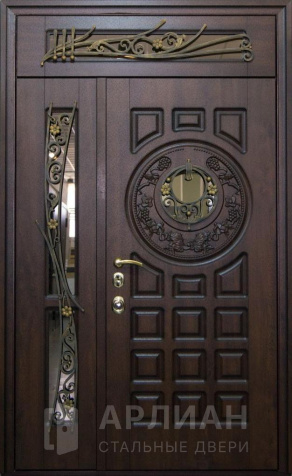 Высокая арочная дверь с фрамугой и кованой решеткой №12